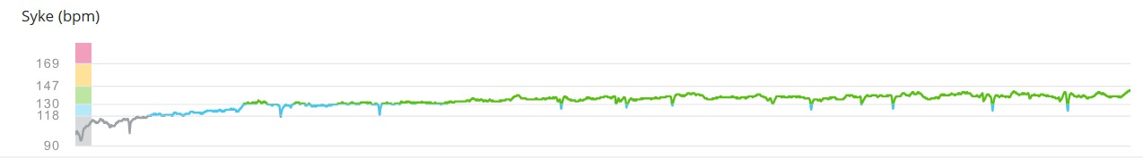 Traineri 1h 30min (ka. teho 169W, ka. syke 132/min, kad. 80 rpm)
